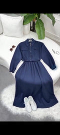 2-Piece Zipper Jacket & Long Frock Set -Blue